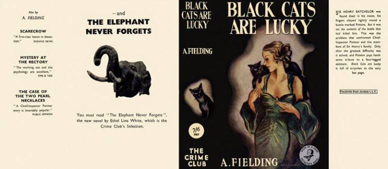 [Full review] Over-trustful bachelor returns to England from Provence and is slain. Insp. Pointer goes to Mentone for final clutch. - Intricate plot well handled, although pace is slightly pedestrian. Colorful background and passel of slippery customers. - Verdict: Average. — "The Criminal Record," THE SATURDAY REVIEW (August 28, 1937)BLACK CATS ARE LUCKY.
